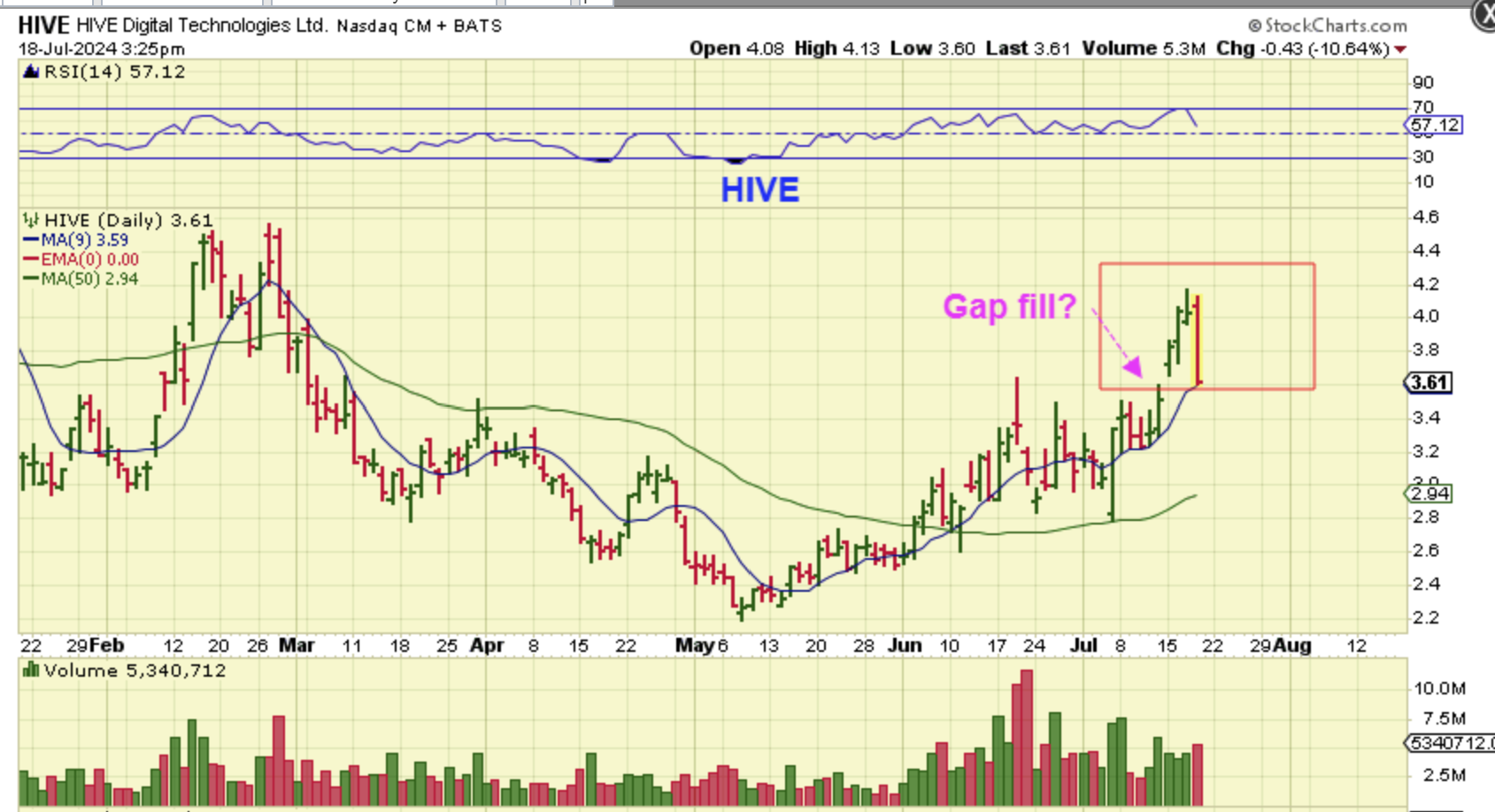 I have owned HIVE for a while now, so I had decent gains here. One thing that is bothersome about some of these is that in 1 day like yesterday, we saw HIVE give back 3 days of gains in a 10% drop. I still have gains here, but if this were to continue with Bitcoin going sideways to the 20 ema, this could drop to that 50sma again, and start all over. GREAT NEWS for anyone wanting to buy, bad news for anyone in that ‘Buy & Hold’ mode.