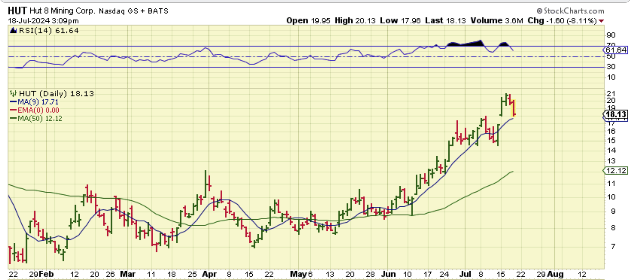HUT – After a strong run like the one we saw in Hut, a small pause in Bitcoin can cause a drop of 8-10% in 1 day. If that pause continues in Bitcoin, HUT may get choppy or it could drop further too.