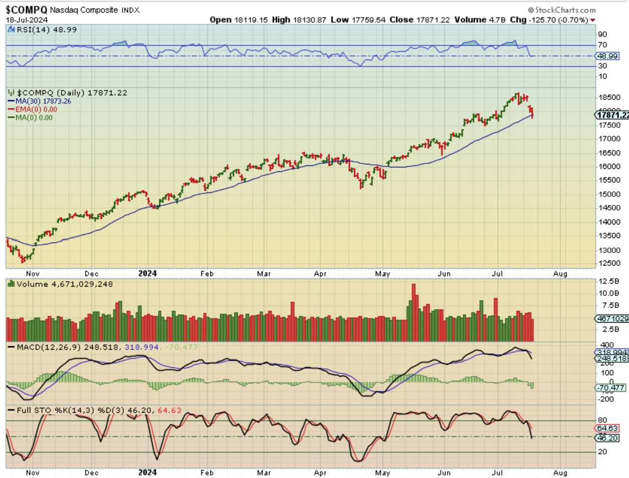 NASDAQ – We We’ll see today if we get a reversal from the selling or will the Nasdaq close below the 30 or 34 sma.