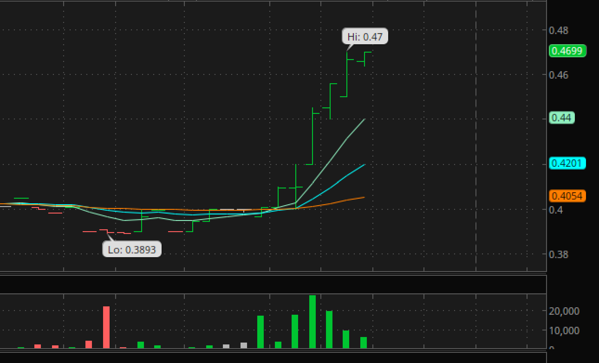 Near the end of yesterdays trading I suddenly saw AUMN take off higher by 16%, so I grabbed this chart and posted what I saw. AUMN didn’t seem to have any news at the time.