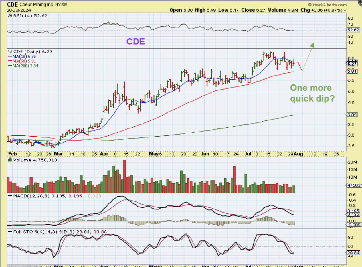 CDE looks great and hasn’t even been able to tag the 50sma, despite the Silver sell down. It may or may not dip down again, but so far it did not follow Silver lower.