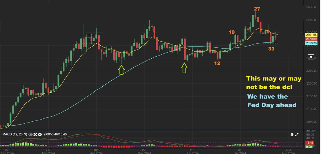 GOLD is within the timing for a dcl at day 33, and this very well could be a dcl in place at the 50sma right before the Fed mtg.