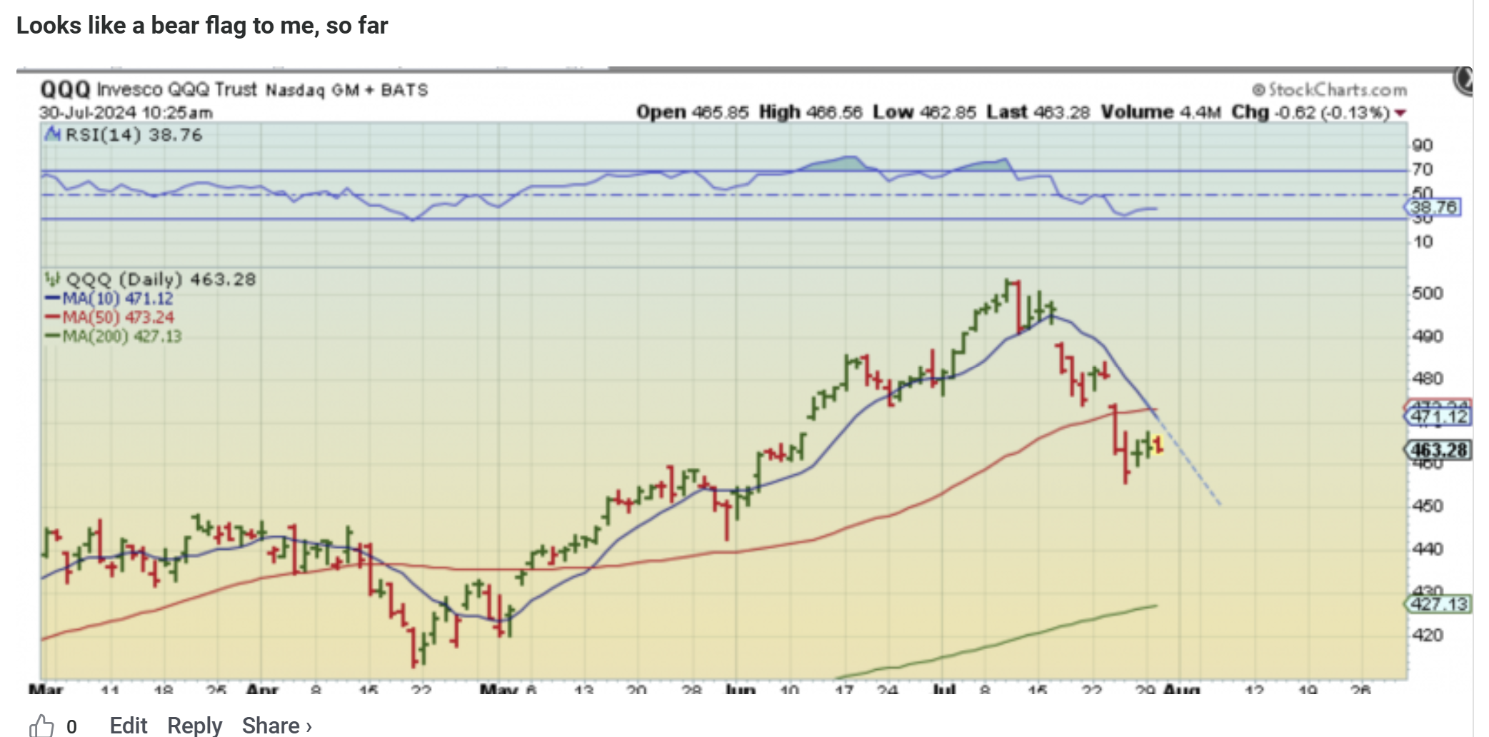 NASDAQ saw the follow through lower after I posted that QQQ chart.