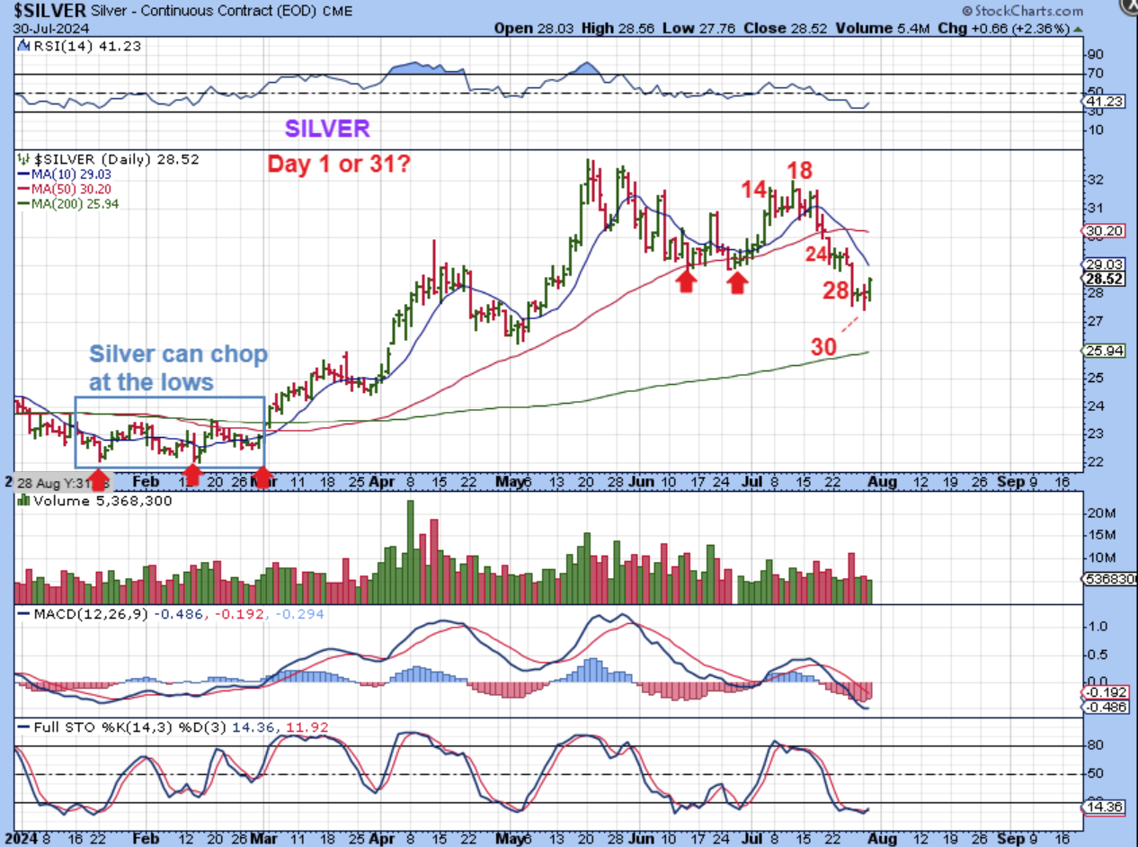 Today is the F.O.M.C Interest Rate decision day, followed by a speech by Fed Chairman Powell. It is pretty much always volatile and filled with knee jerk reactions and false moves from 2 p.m. to the close, but to be honest, the set ups in the Precious Metals sector do look nice and the timing aligns with them being ready to make another move higher. Take a look at some 1 year charts and you’ll see that this has been a 2024 Bull market and ‘buy the dips’ has paid off nicely every time. I sold my miners a while back and now is the time to have a basket and add to it too. Enjoy your Fed Wednesday!