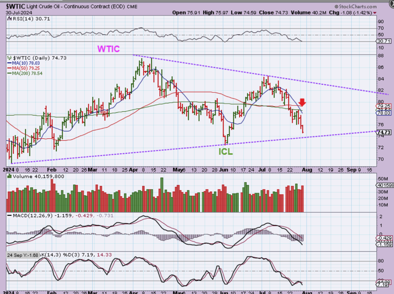 WTIC – Oil is still dropping and I have mentioned that this is an ICL and it might just do a ’round trip’ with a higher low to come. GUESS WHAT THOUGH?…