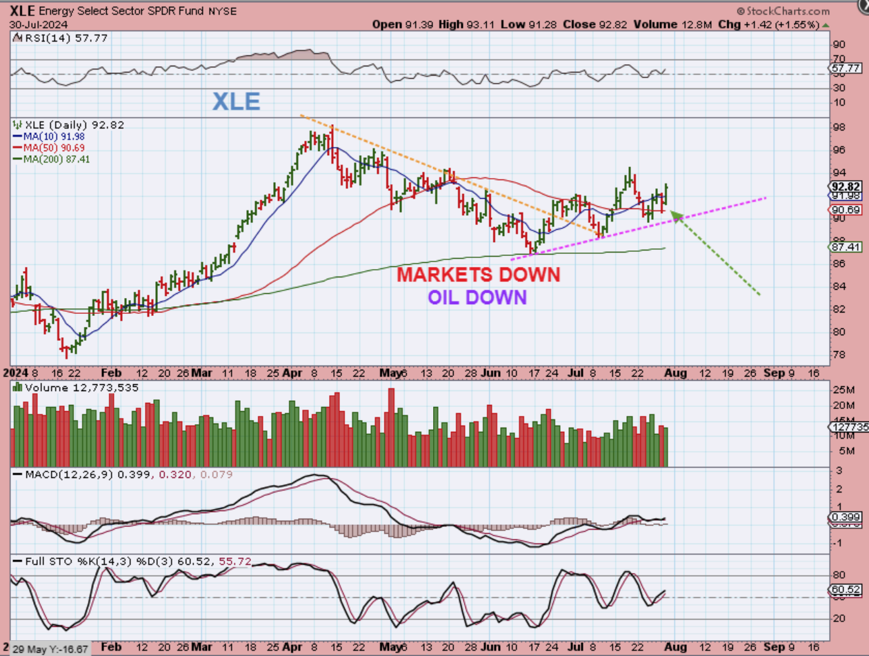 XLE – So the Oil sector (stocks) remain bullish, even with Oil and The General Markets selling down yesterday.