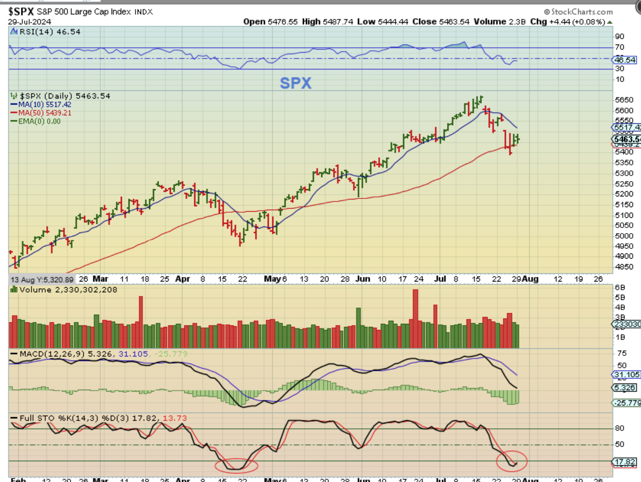 Tomorrow is the FOMC Meeting, and we all know how that can go. We have to expect some volatility until we get past that time period. It is expected that a discussion about cooling inflation and future interest rate cuts is on the table, but no rate cut is expected at this time. Can you imagine what a ‘surprise’ cut would do? No doubt that would really drive the markets higher. That said, I am not expecting a surprise cut, I just wanted to mention that thought, to keep us on our toes. We seem to be set for a rate cut in September and possibly another one after that, but tomorrow is still a big day. Now let’s look at the charts to see how they are set up going into that Fed Decision.