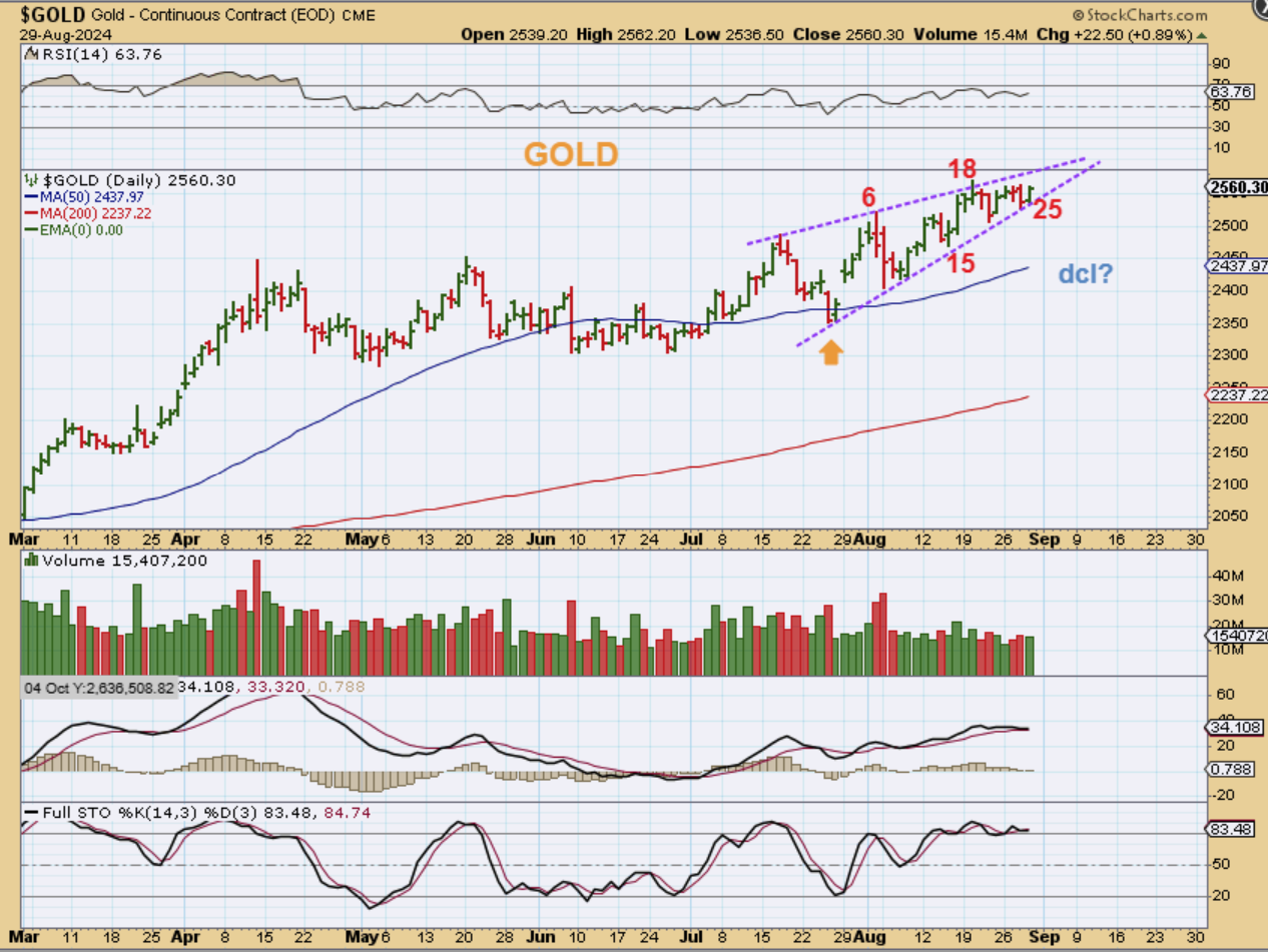 GOLD moved higher yesterday and ALMOST made a new high above day 18. I have pointed out the rising wedge this week, and they do usually break down, but we also know that we are coming due for a dcl soon.  We are on day 25.  COULD THIS BREAK TO A NEW HIGH FIRST?  Yes.