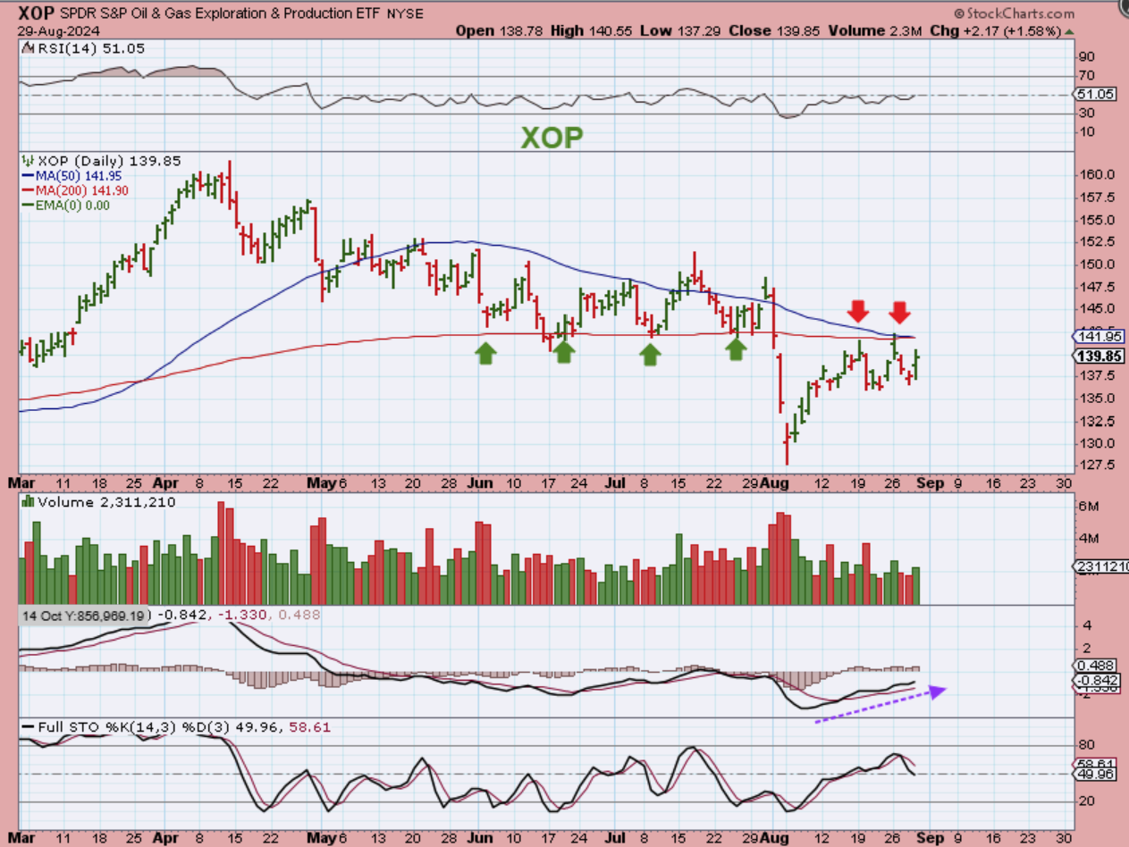 XOP – Oil stocks actually did look good though, despite the General Market sell off. The XOP looks like it’s ‘crawling’ under the 50 sma and 200sma to build energy for a breakout. If someone was interested in this set up, they could…