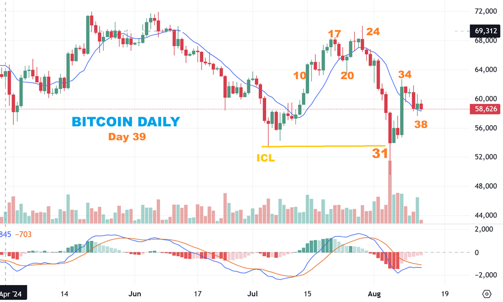BITCOIN – We are now on day 40 and bitcoin moved higher out of that day 38 low yesterday and overnight.