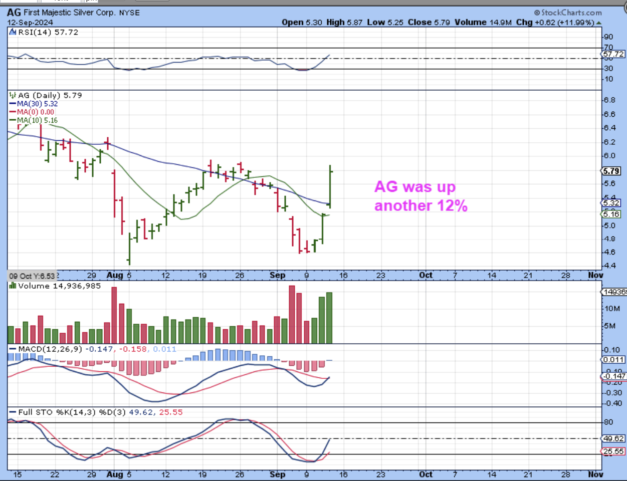 I said that AG was oversold and it popped up almost 8% with the rate cut hopes. GATO ran higher too (AG bought GATO).