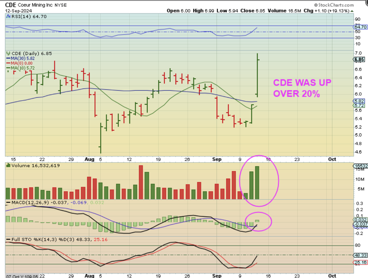 CDE was up over 20% at one point yesterday, and look at that volume! So keep an eye on FSM, HL, SSRM, PAAS, MAG, etc, because Silver stocks are really moving nicely.