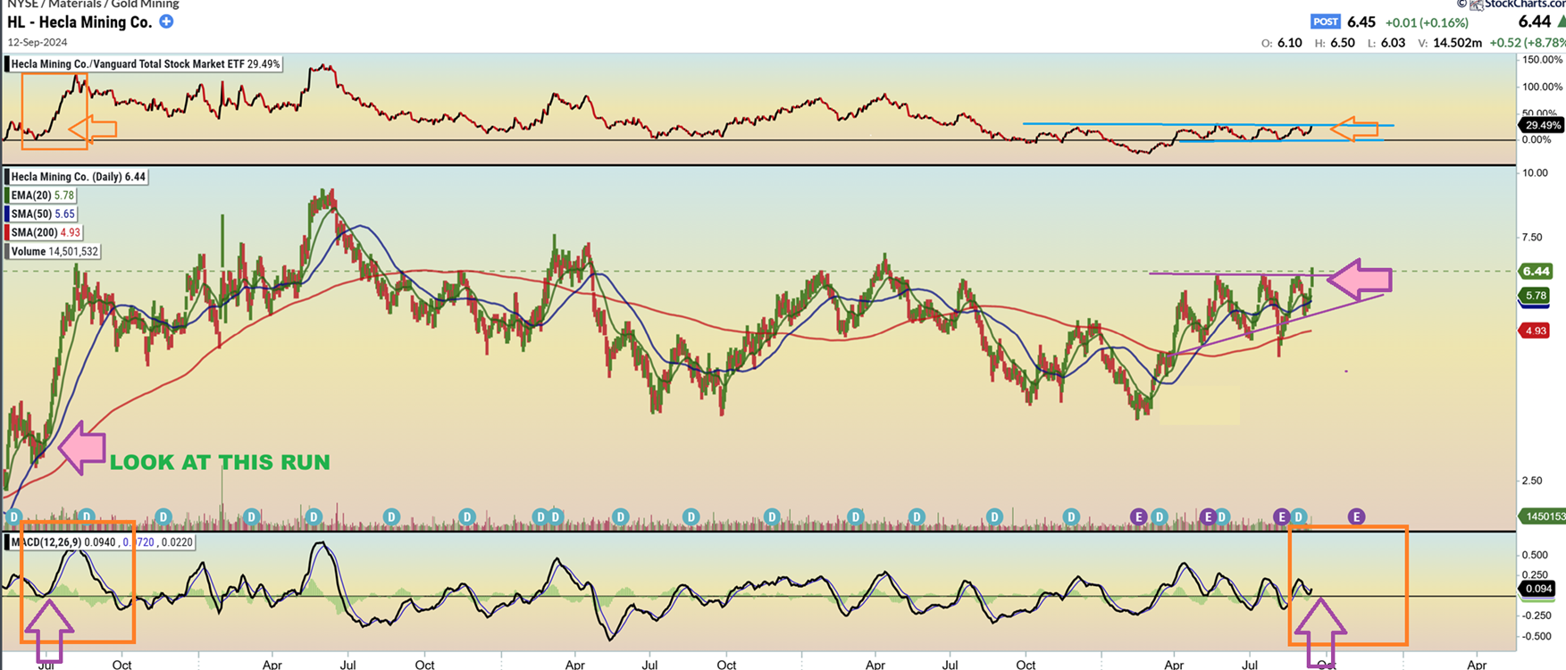 HL ran straight up for weeks in 2020 and Thursday was a recent breakout of a very large consolidation. Selling on Thursday could be a mistake. I would buy this breakout if I hadn’t already bought it on Wednesday.