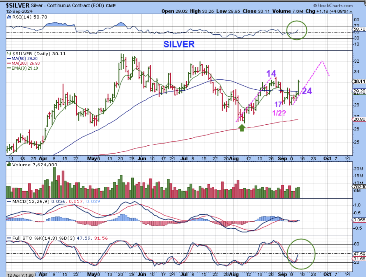 If Silver dropped this week, then this would have been a 5th daily cycle, but this now looks like an ICL, a half cycle low, and the rest of the first daily cycle. If this is only the FIRST daily cycle, and Gold is breaking to All-time Highs after its’ ICL? Silver can really run higher.
