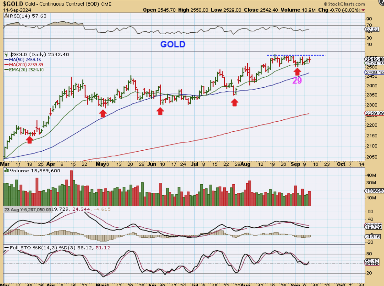 It seems like a lot of the Market price action is being triggered by the hopes of an interest rate cut by the Fed. I have been expecting the selling to resume, but yesterdays data seems to have caused some to feel that we will now see a .50 cut instead of a .25. All I can say is that if we see .25, that may be when the selling returns and this is a half cycle low, as mentioned in the past few reports. This reversal can also cause Miners to run higher, and that was pointed out with this Silver chart a couple of days ago. I said: