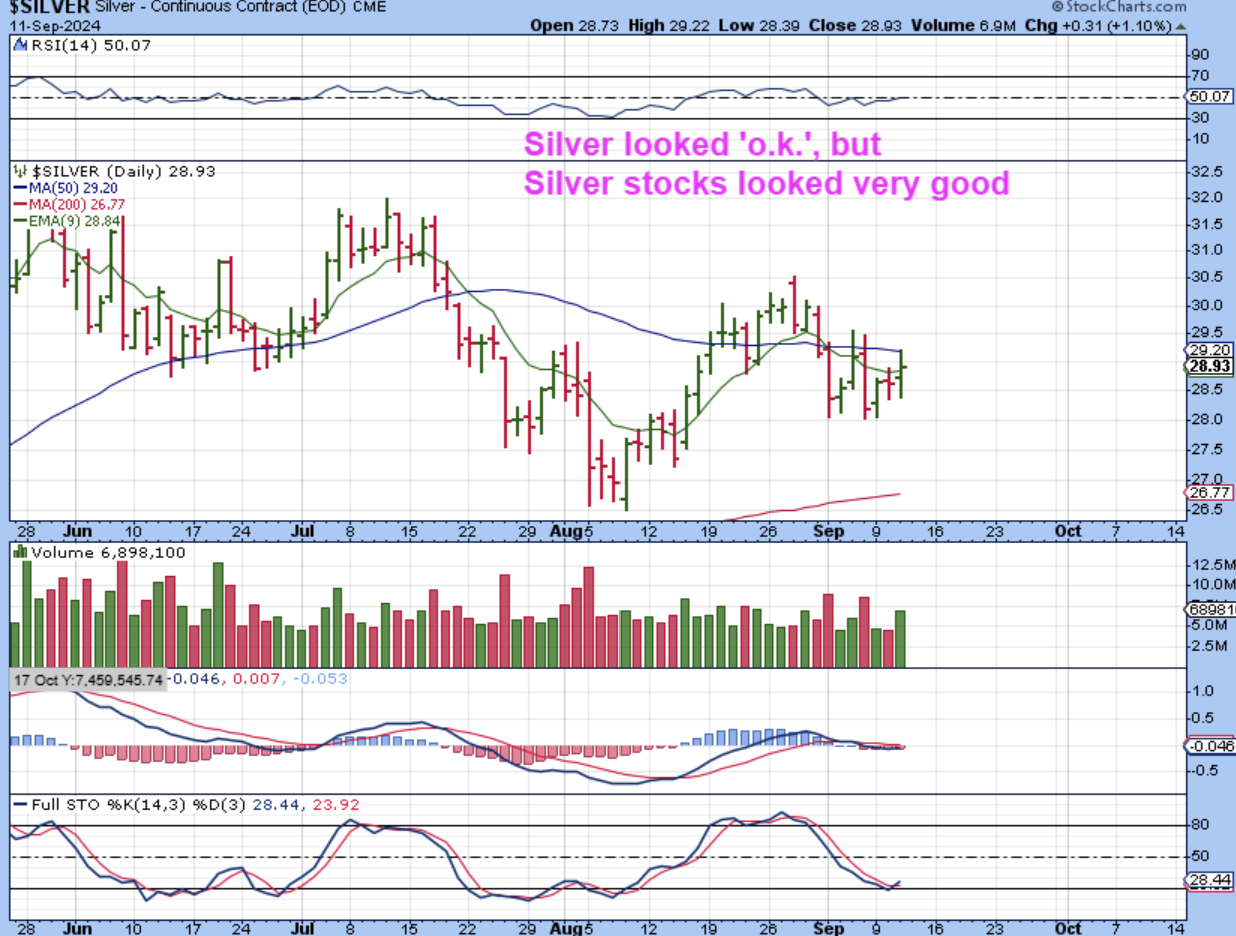 SILVER popped and stopped at the 50sma, but several Silver Stocks looked rather nice actually. For example…