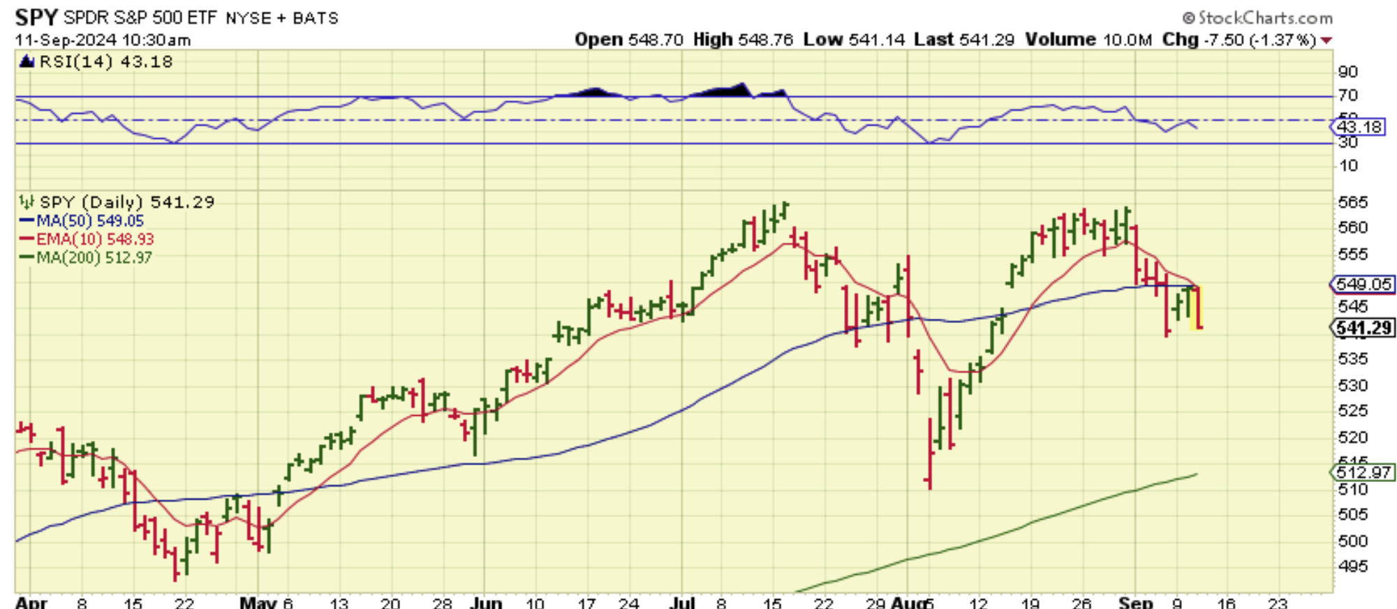 The markets sold off sharply in the morning, and I grabbed this chart after 1 hour of trading. This looked VERY BEARISH and it definitely looked like the sell off was going to continue.