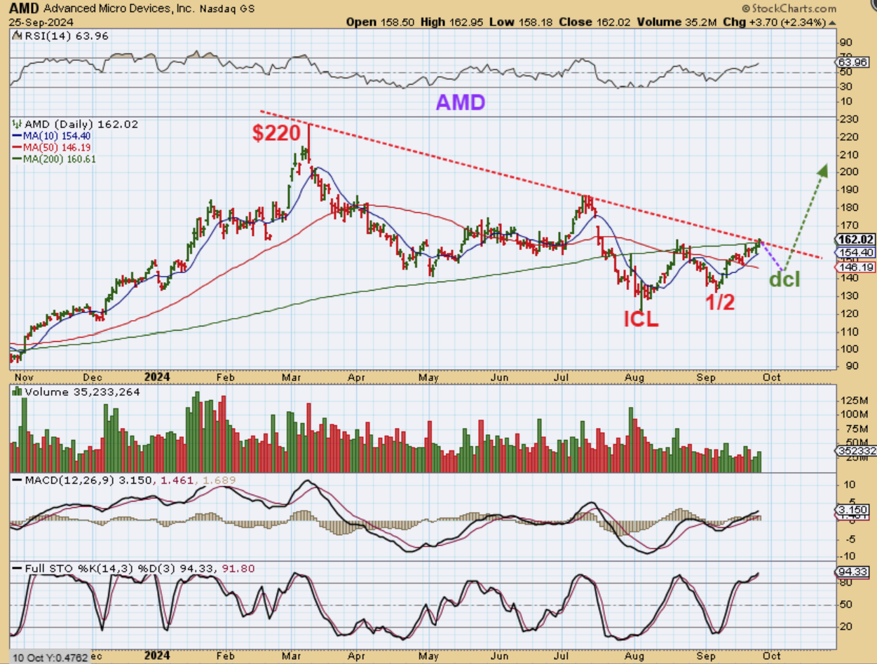 NVDA dipped low on that half cycle low, down to $100. If NVDA starts to regain bull status, this can run MUCH Higher over time, so I did recommend this & others under the 50sma weeks ago and will mention it again here at the 50sma on a dcl dip. One more chart & then we move on…