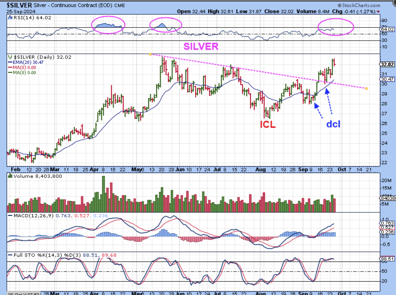 As mentioned last week and in recent reports like yesterday, Silver just came out of the ICL and is now in a 2nd daily cycle and I really like this Bullish set up for Silver ( & Precious Metals in general) when it comes to Bullish set ups, so let’s take another look at the Bulls that are running now.