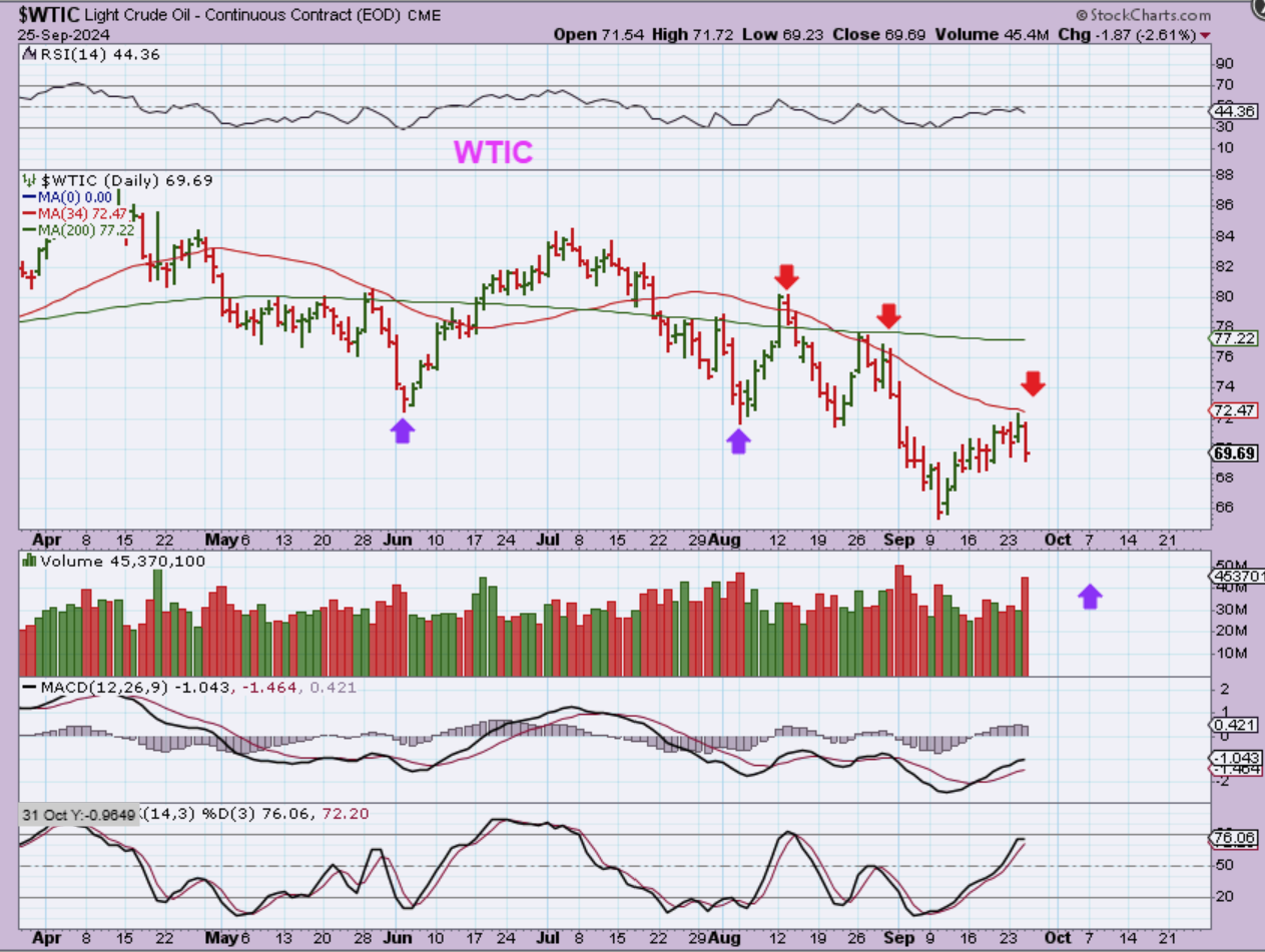WTIC – This bounce should roll over, since the September lows came in too early for an Oil dcl. It may tag the 50 sma first.