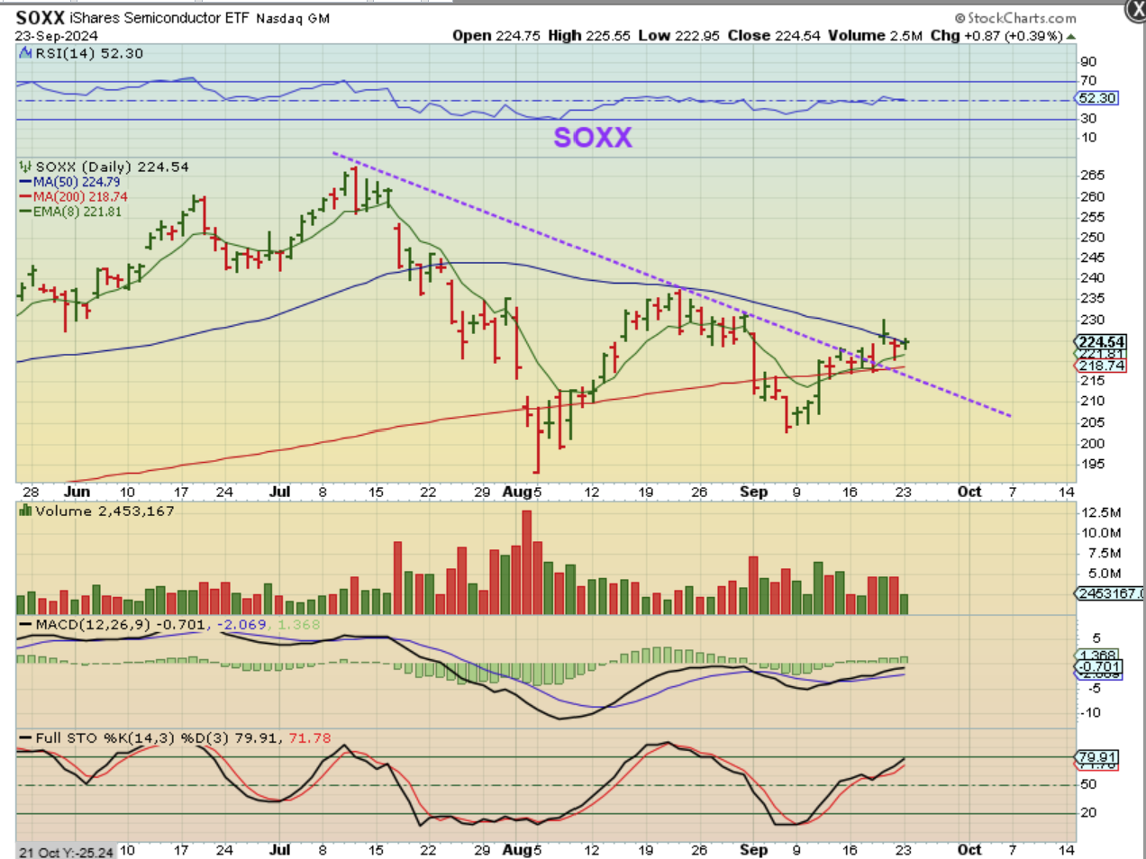 The SOXX still seems to be struggling at resistance area. If it would run back to the highs like the SPX did, it would make a good trade using SOXL (or even NVDA, MU, TSEM, AMD, etc).