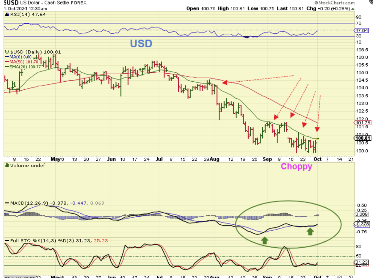THE USD is choppy at the lows and is unable to get above that green 20ema so far. If it does, it should indicate that we have an ICL in place. Also we have that MACD divergence and that has turned bullish in this choppy low.