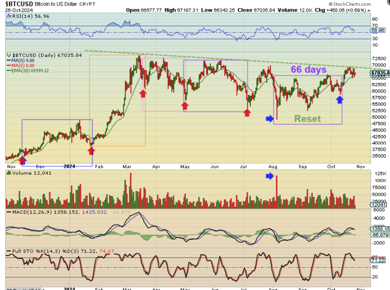 BITCOIN CYCLE COUNT: I am just reminding you of this, because if I did NOT call that capitulation low the ICL and kept it as a day 30ish half cycle low, THIS would be the count we’d be on. We would be coming due for a day 60 drop in a couple of weeks and we’d be on day 40 something.