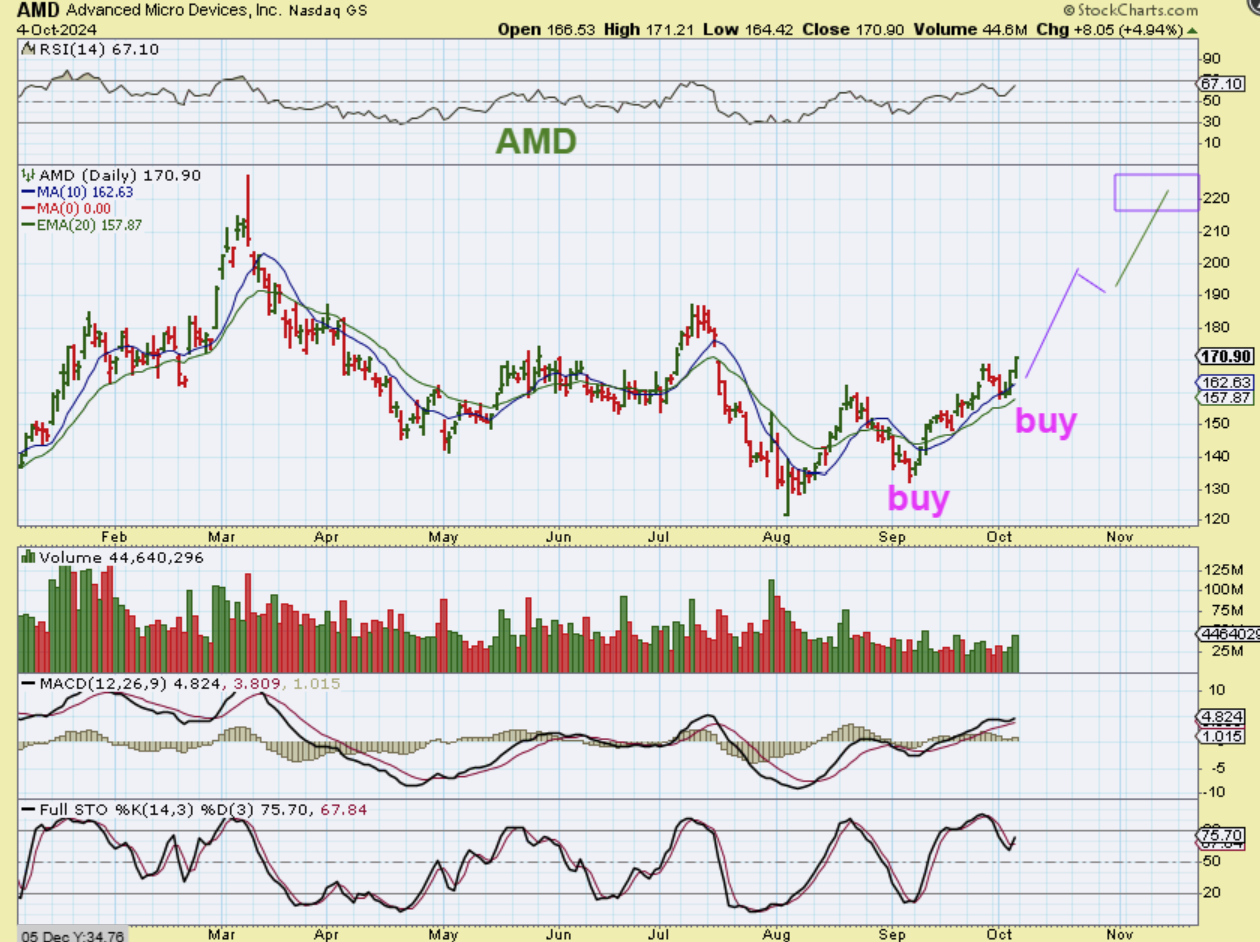 AMD – I really like the set up in many of these semiconductors. You can buy and hold AMD, MU, NVDA, etc. A run from $170 to $220 is a nice 30% gain.