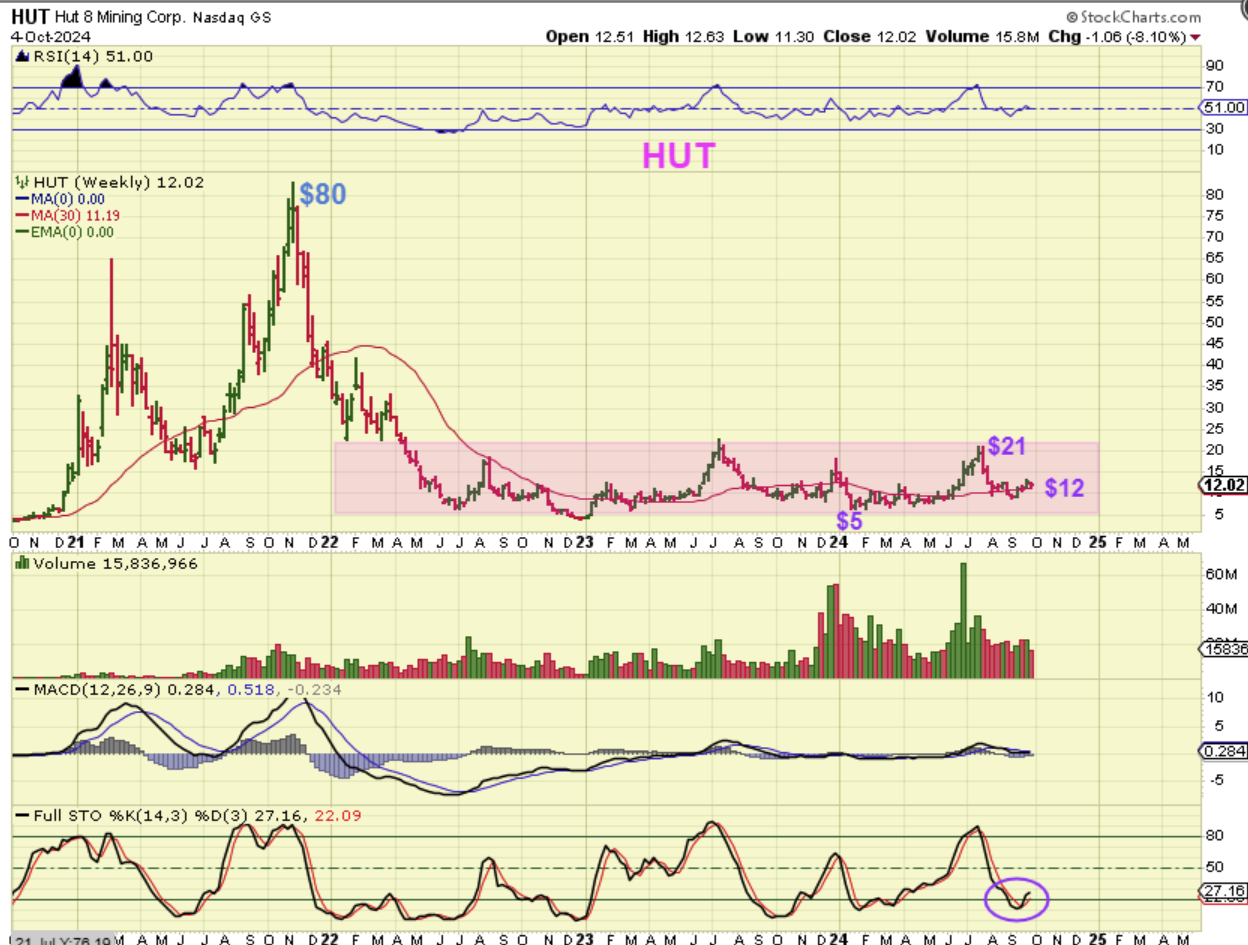 So that’s how the Markets are set up going into next week. It looks like The General Markets are set up to continue higher, with some nice set ups in Tech and Semiconductor stocks. Oil and Oil stocks could pull back after a straight up surge, but they should also continue higher over time. Gold may have ‘peaked’ in its intermediate cycle, but Silver is out of sync with Gold and it is only 2 months out from the ICL, so I think that Silver can move higher too. I have been trading Crypto Stocks, since they looked to be bottoming with Bitcoin, and that area does look good, so I’ll discuss Bitcoin below. Enjoy your weekend!
