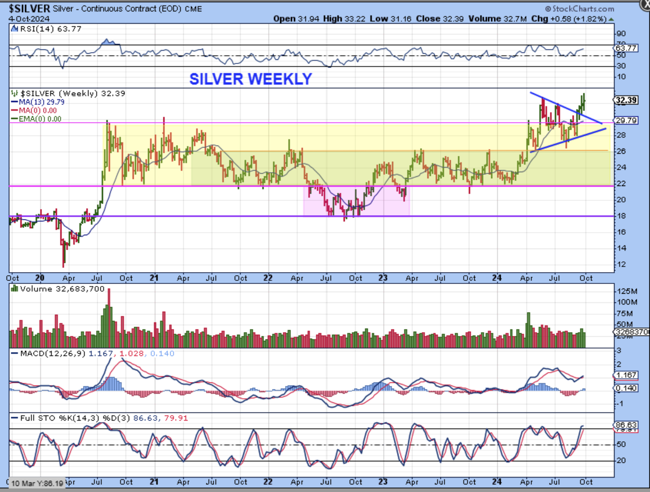 THE USD bottomed and ran straight up last week for 5 straight days, but this run higher has not adversely affected Gold and Silver as much as it usually does. Silver was actually able to break out to new highs last week and Gold is still up at the highs too.