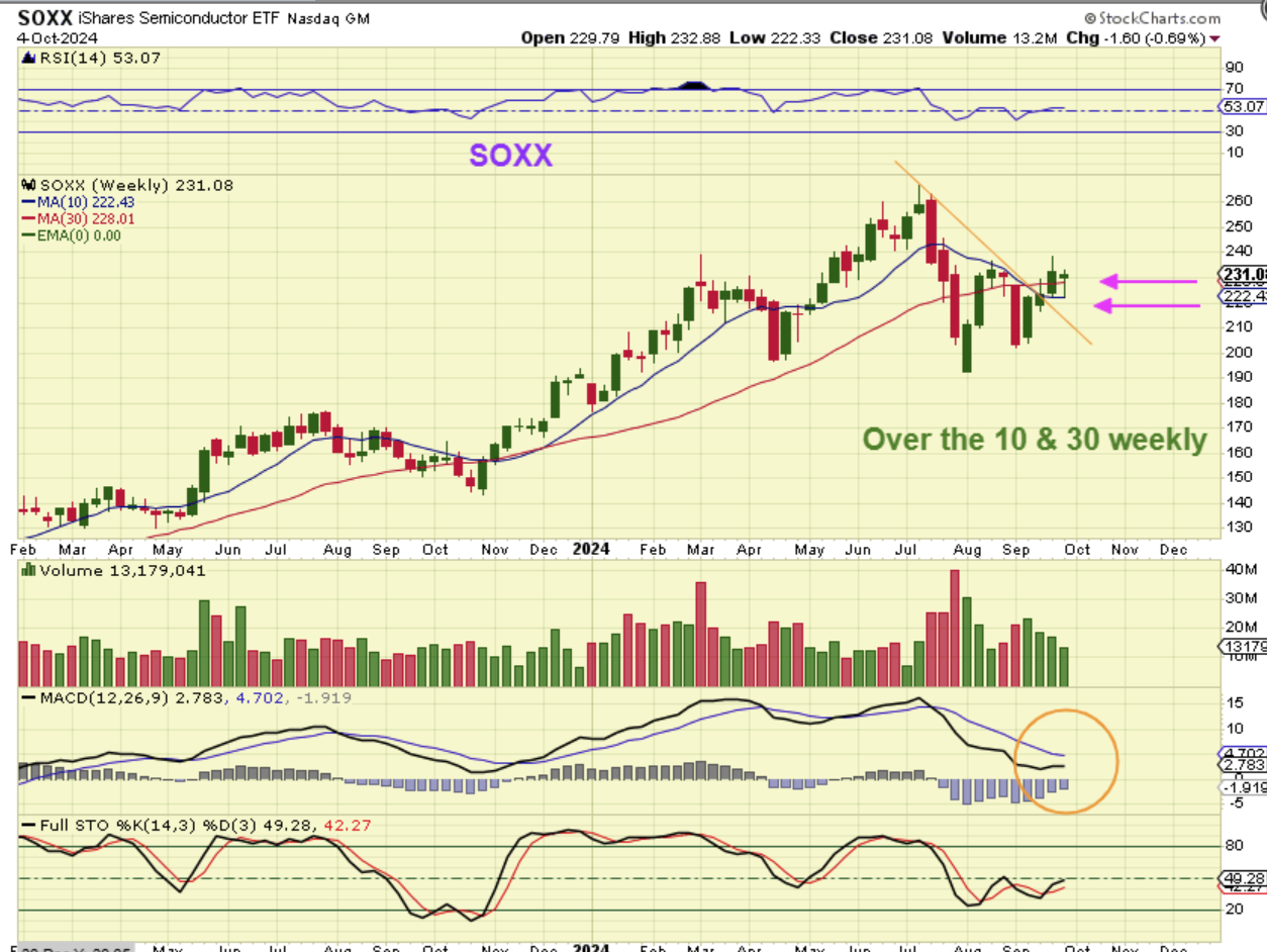THE SOXX dropped to the 10 week ma and bounced back above the 30 week ma. That is bullish price action on a weekly basis, so the SOXX (SOXL) can be considered a buy too (or MU, AMD, NVDA, TSEM, etc). This may now play catch up to former highs, and…