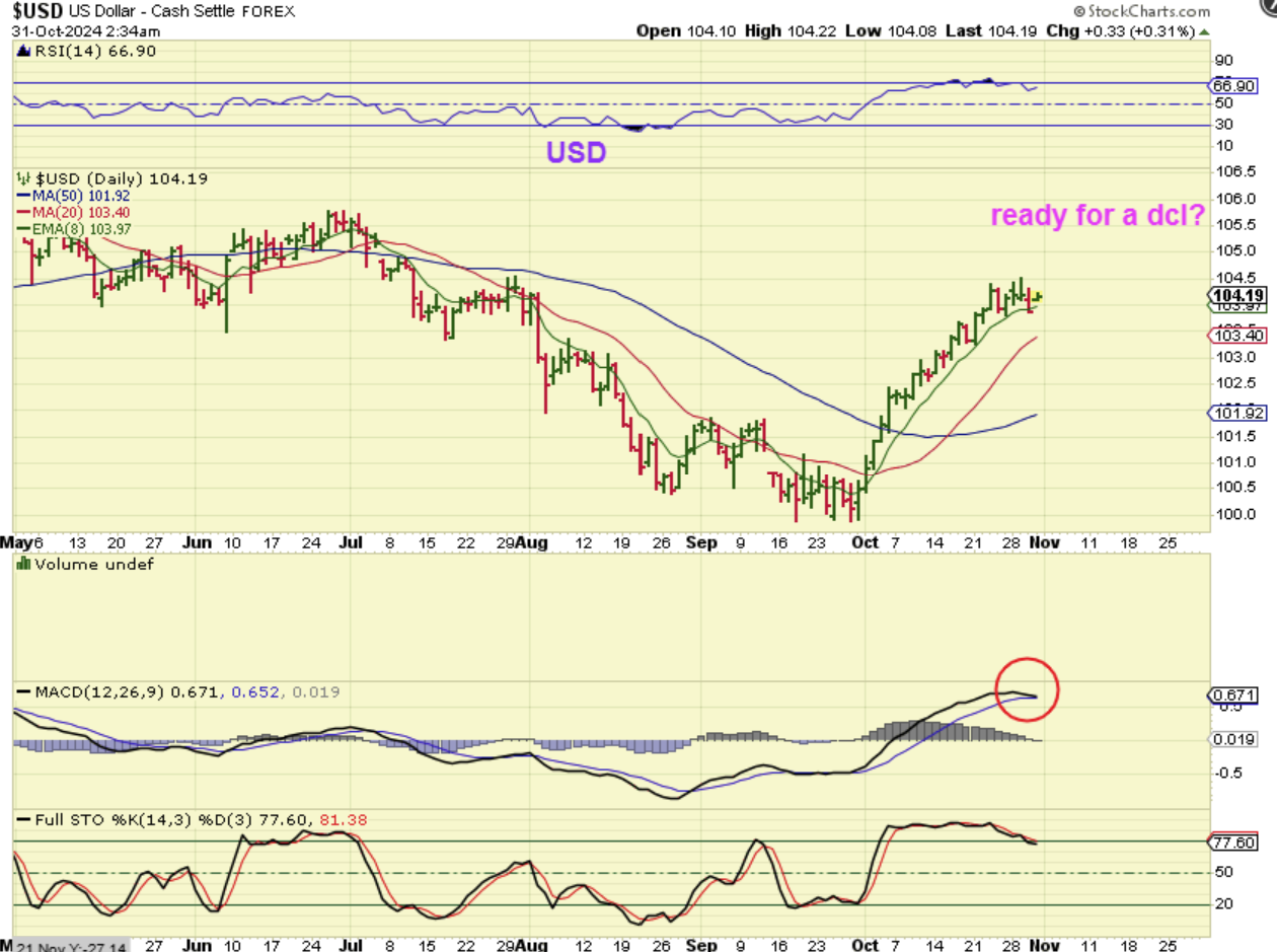 THE USD is due for a dcl, so this sideways chop is likely leading to a drop. The MACD is rolling over with the sideways price action. Note: The USD movement hasn’t really affected Gold, so I don’t know if it will help other areas when the USD dips.