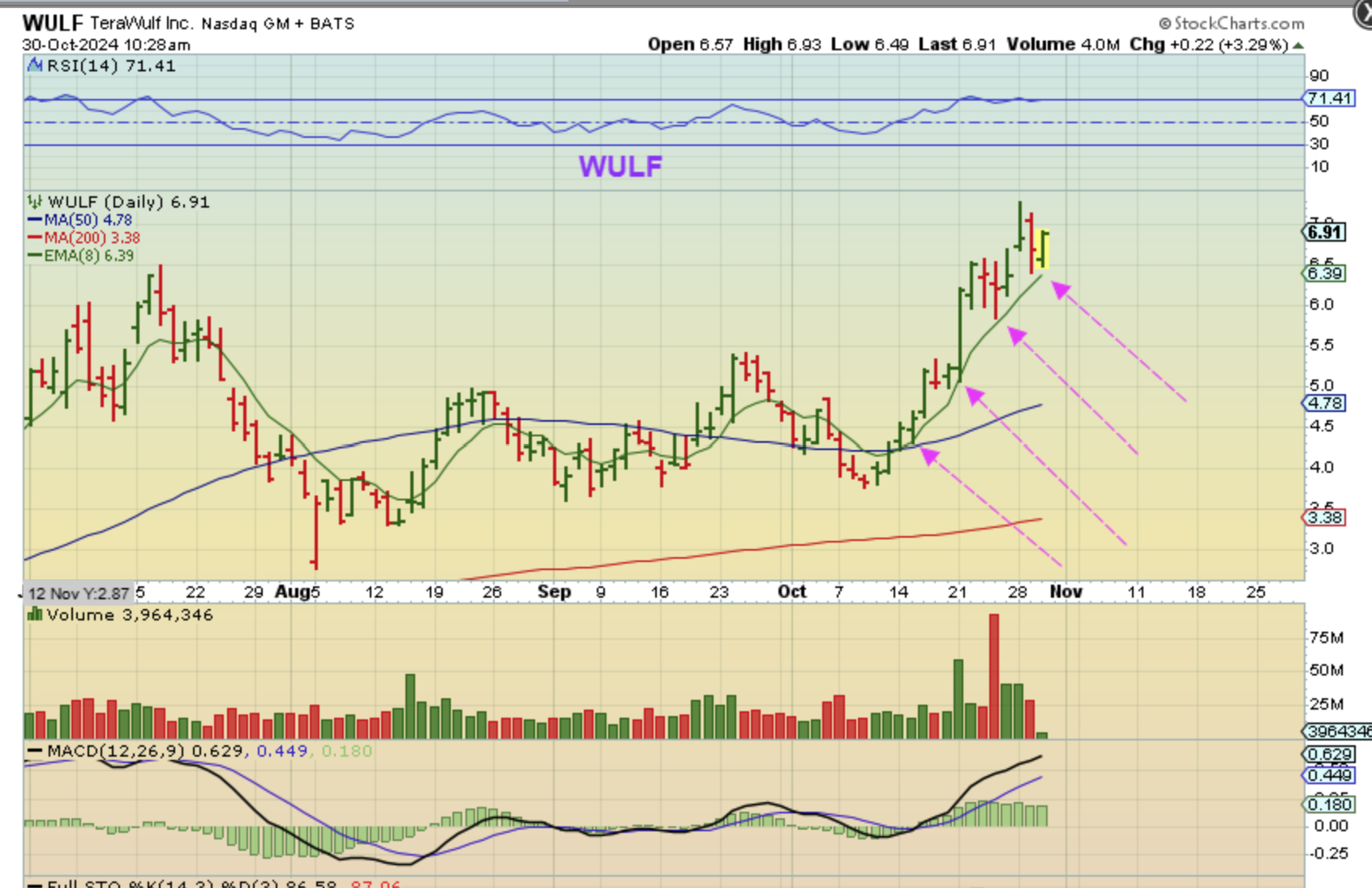 WULF continued higher yesterday after reversing above the 8 ema.