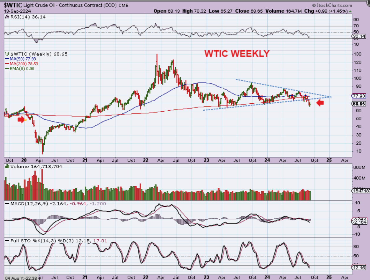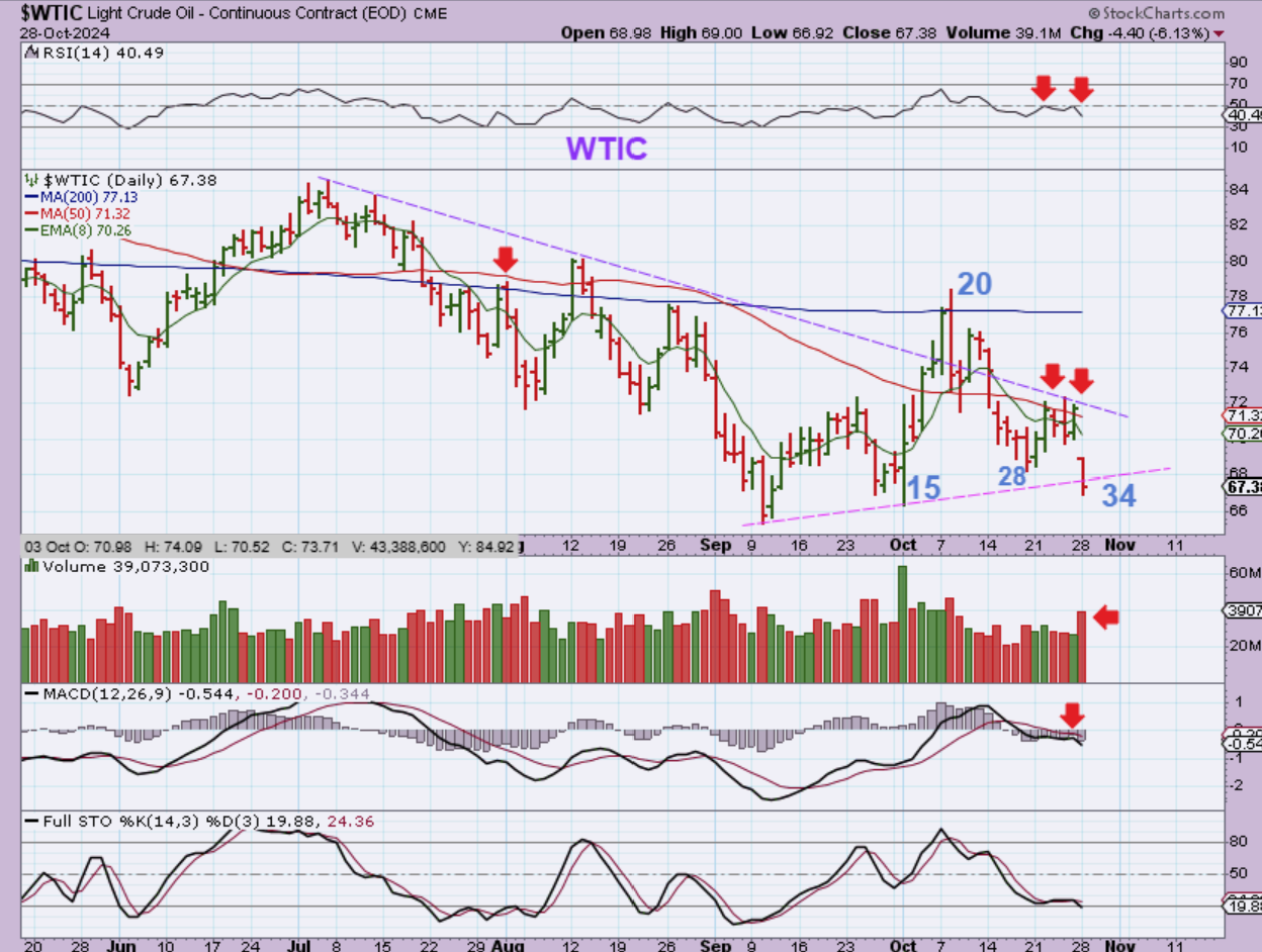 Sell off lower for a couple of weeks? Could it? Back in September I posted a couple of longer-term charts reminding us that Oil traded in the single digits just 4 years ago, so anything can happen.