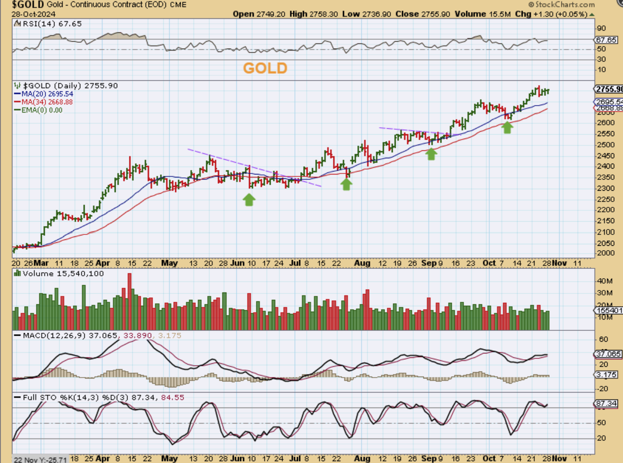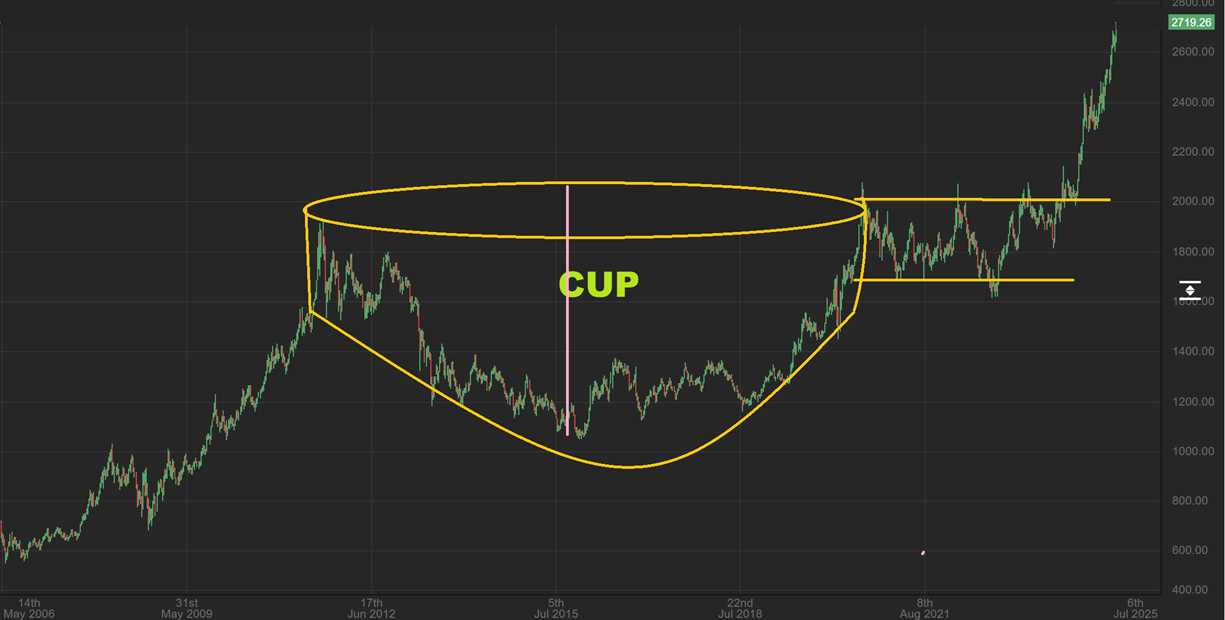 Gold broke out from its own long consolidation, and we had that cup and handle breakout and run.