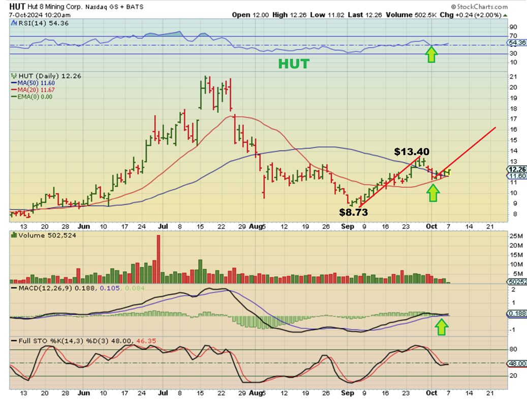 HUT was a buy weeks ago (or add if you bought that downtrend break as a buy and hold at $10. It was pointed out here at the 50sma as a buy too, and…
