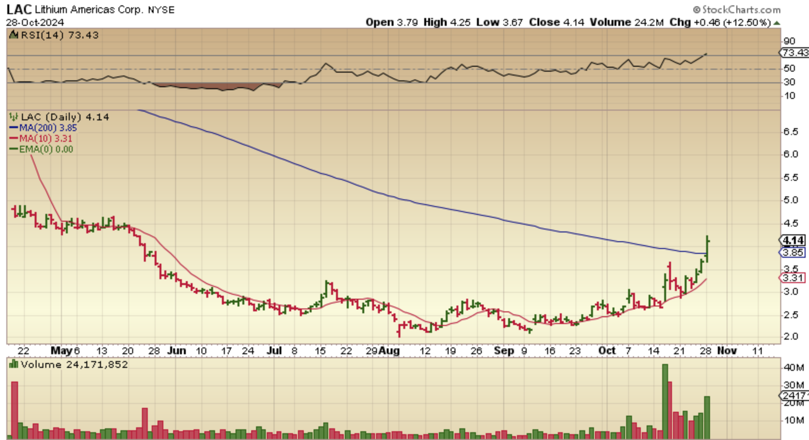 LAC continued higher and has now broken through that 200sma.