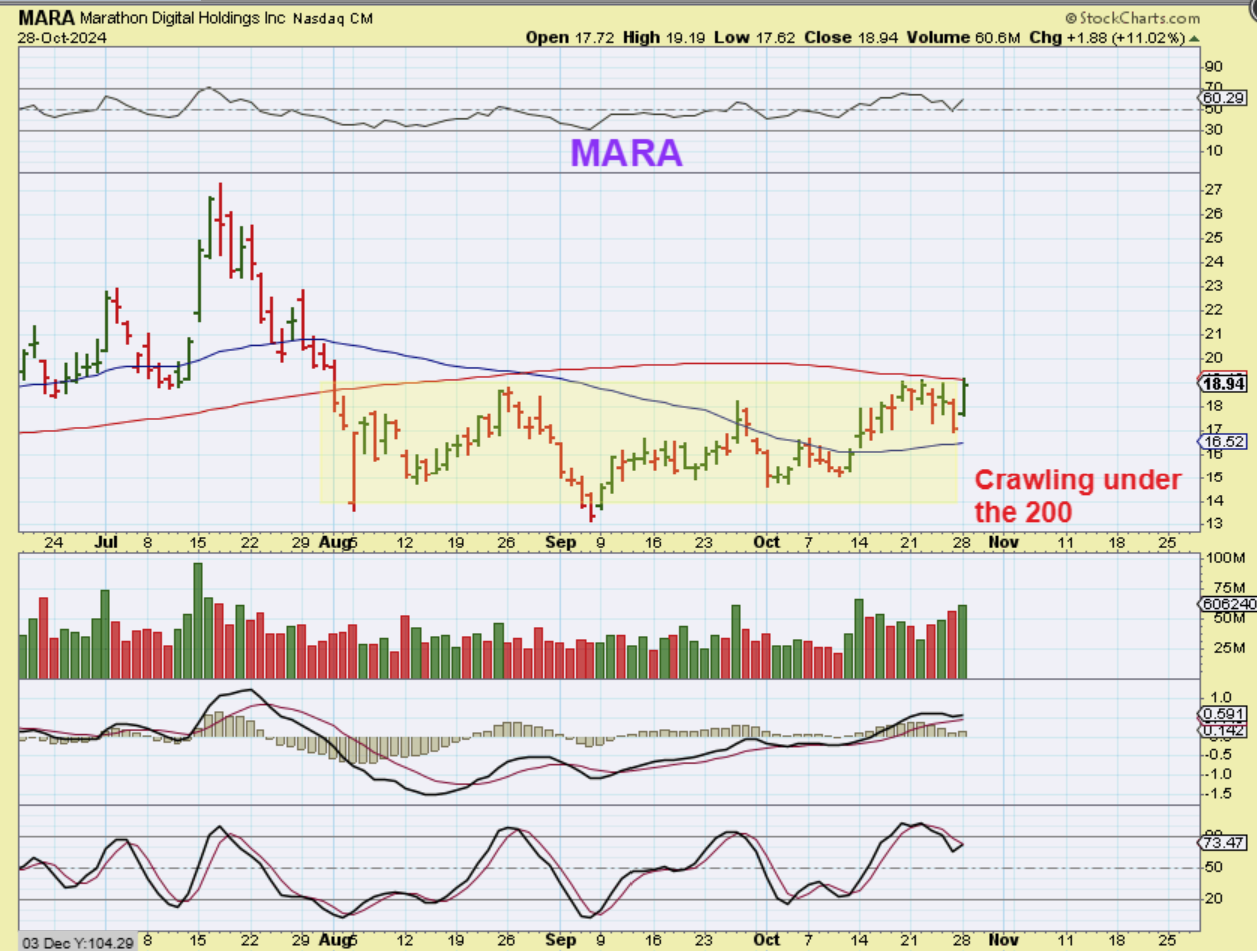 RIOT broke out above that 200sma and MARA looks set to do that on Tuesday.