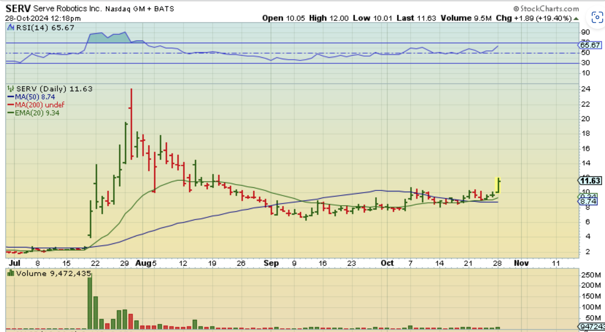 SERV: After a strong rally, many of the Robotics stocks started to base out. SERV, RR, KITT, etc. SERV popped and closed up over 20% and RR did too. KITT looks ready to go, so the Robotics sector is perking up again too.