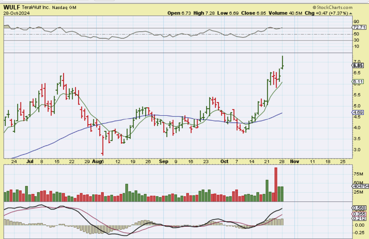 WULF did a pop and drop on Monday, but it has already been a leader. $4 to $7 in recent weeks, but I also think that it has plenty of upside over time.