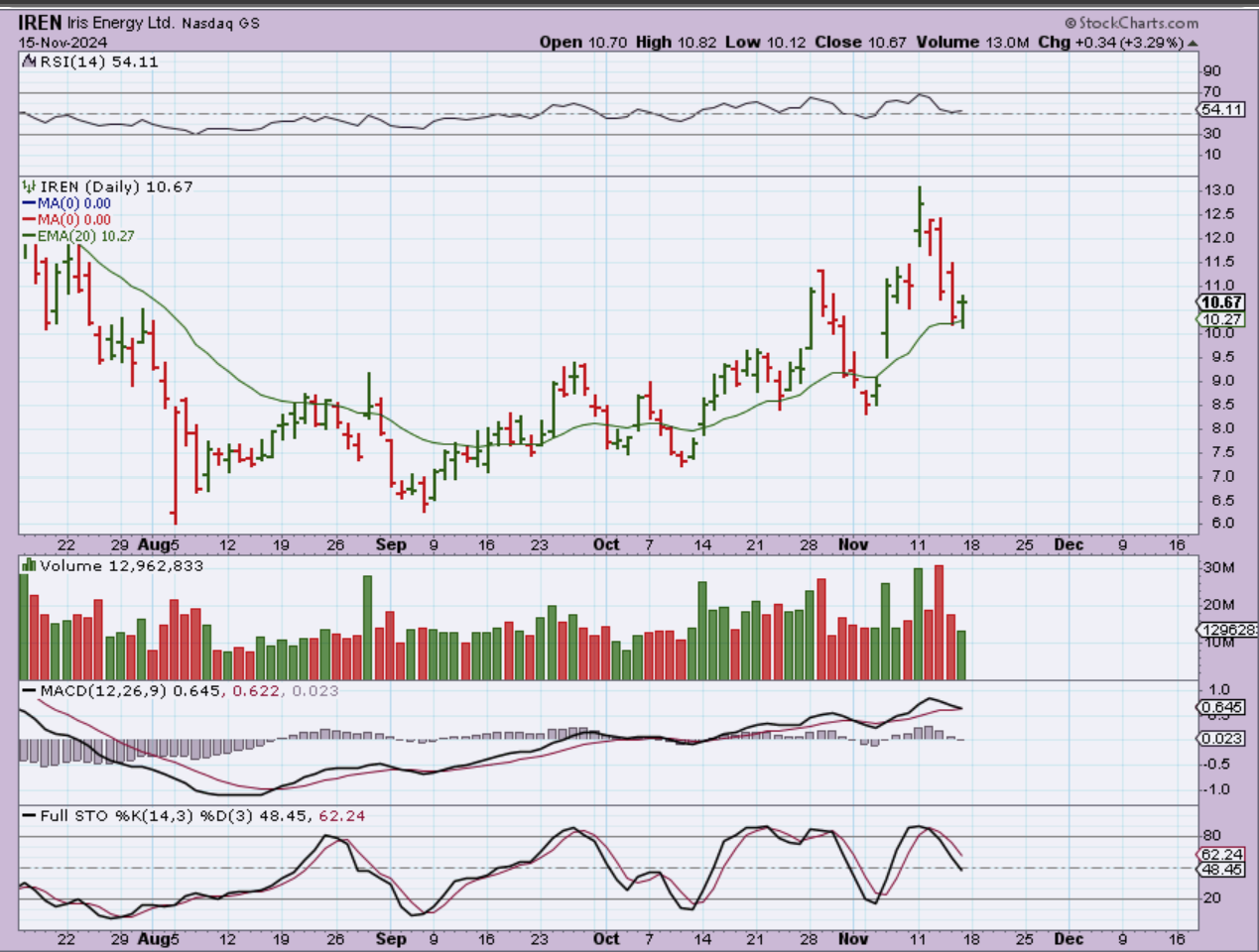 IREN DAILY – Iren also closed up over 3% after reversing at the 20 ema.