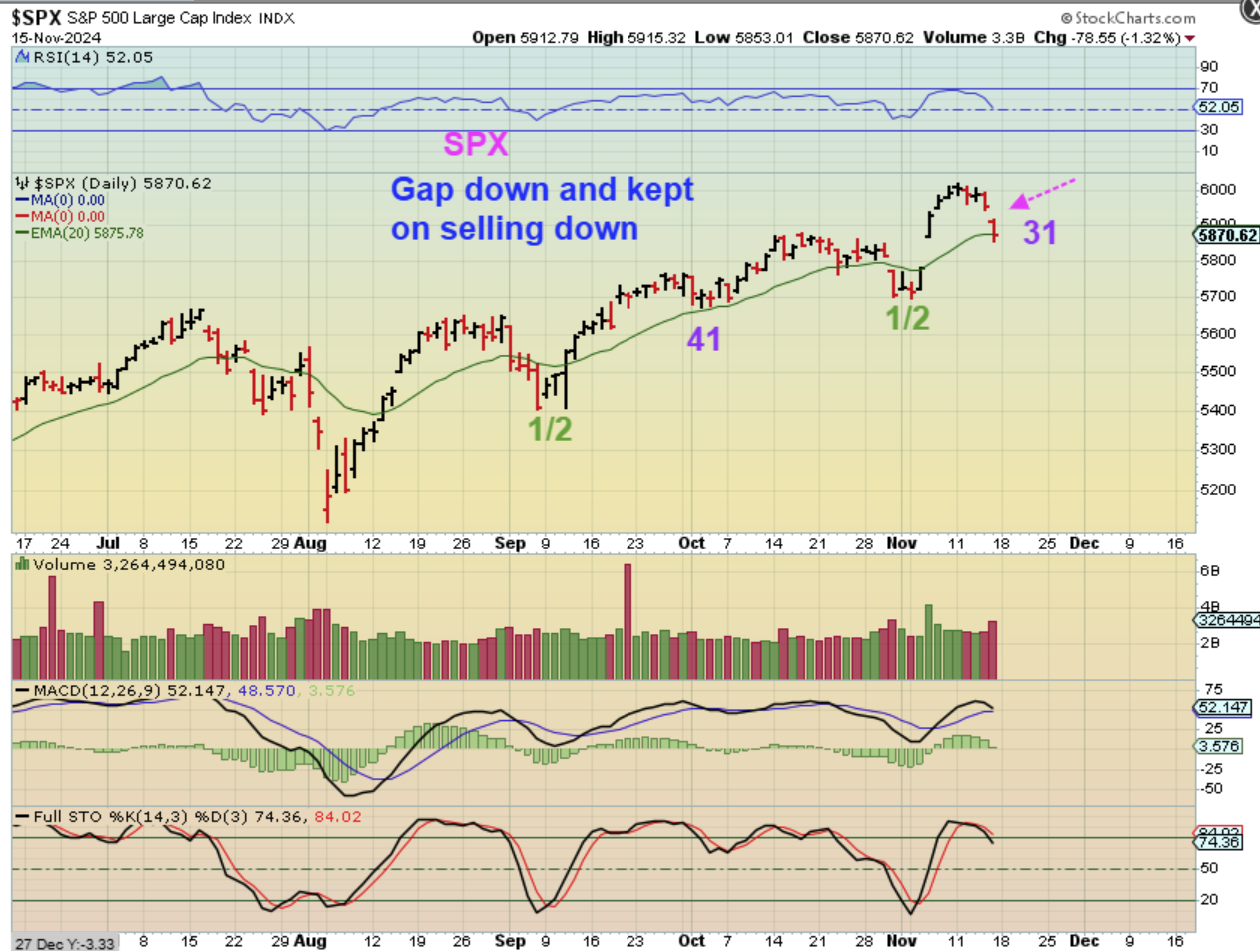 The General Markets need to be monitored closely, because we are already seeing cracks appear. The SOXX broke down and the semis usually lead the markets, so some may want to think about shorting or using a short position as a hedge if they rode some stocks out of the ICL. Oil should bottom soon and Oil Stocks look good, as long as they don’t get caught up in any selling if or when the General markets sell down. The USD has been very strong and is in a 2nd daily cycle. Gold, Silver, and the Miners are dropping down into a dcl. That dcl may become an ICL, but it does seem more likely that we’ll bounce and then drop 1 more time. You can play the bounce just in case it rallies from that low. Finally, Bitcoin. Bitcoin has been very bullish, but the Crypto stocks all dropped and pulled back when Bitcoin ramped up over $90,000. Was it just a normal pull back for the stocks or a disconnect that we saw earlier in 2024? I discussed that possibility in my reports, but it was interesting that on Friday, when the General Markets sold off all day long, Crypto stocks bounced and recovered to green. Many were up 3-4% and some were up even more than that, so I’ll discuss Bitcoin below.
