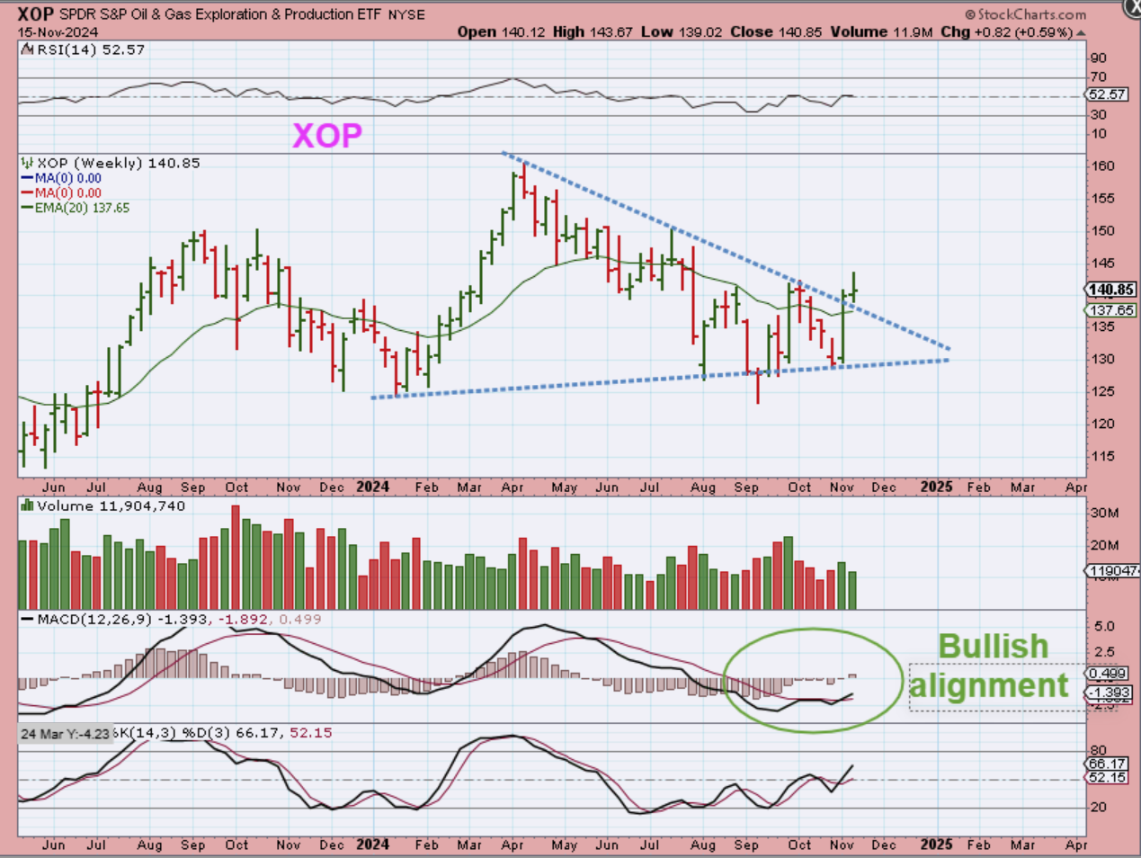 XOP WEEKLY -The Oil stocks did not drop to the lows like Oil itself did. In fact, The XOP was up 8% 1 week ago and broke the downtrend of a triangle and has more of a bullish MACD set up, so this makes it look as though Oil is at the lows and may be close to bottoming with an ICL.