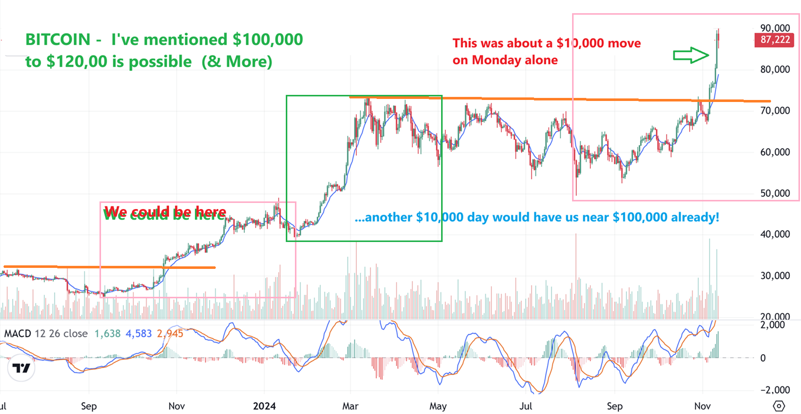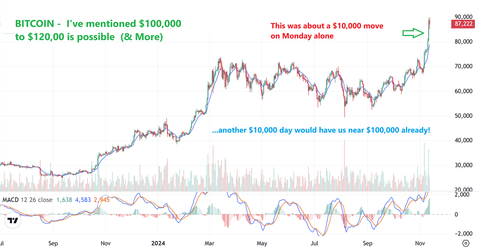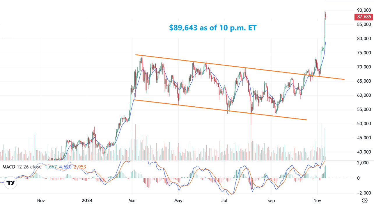 And that was a timely chart, because we can now see that with Bitcoin, we may not see a back-test either. The Crypto stocks took off higher too, many were 20-30% last week and 20-30% Yesterday. It’s hard to say where bitcoin goes from here, but think about this…