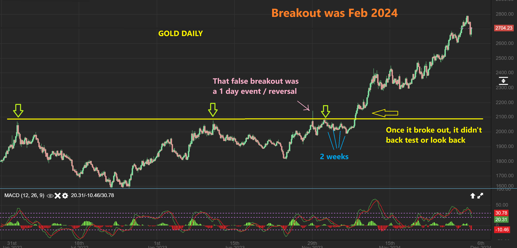 Last week I wanted to show this chart of Gold as Bitcoin broke out.
