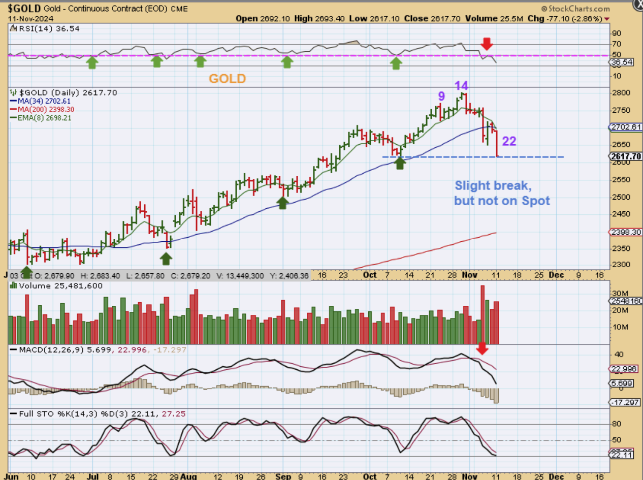 GOLD sold off sharply for the first time in a long time last Wednesday after the election results came out.