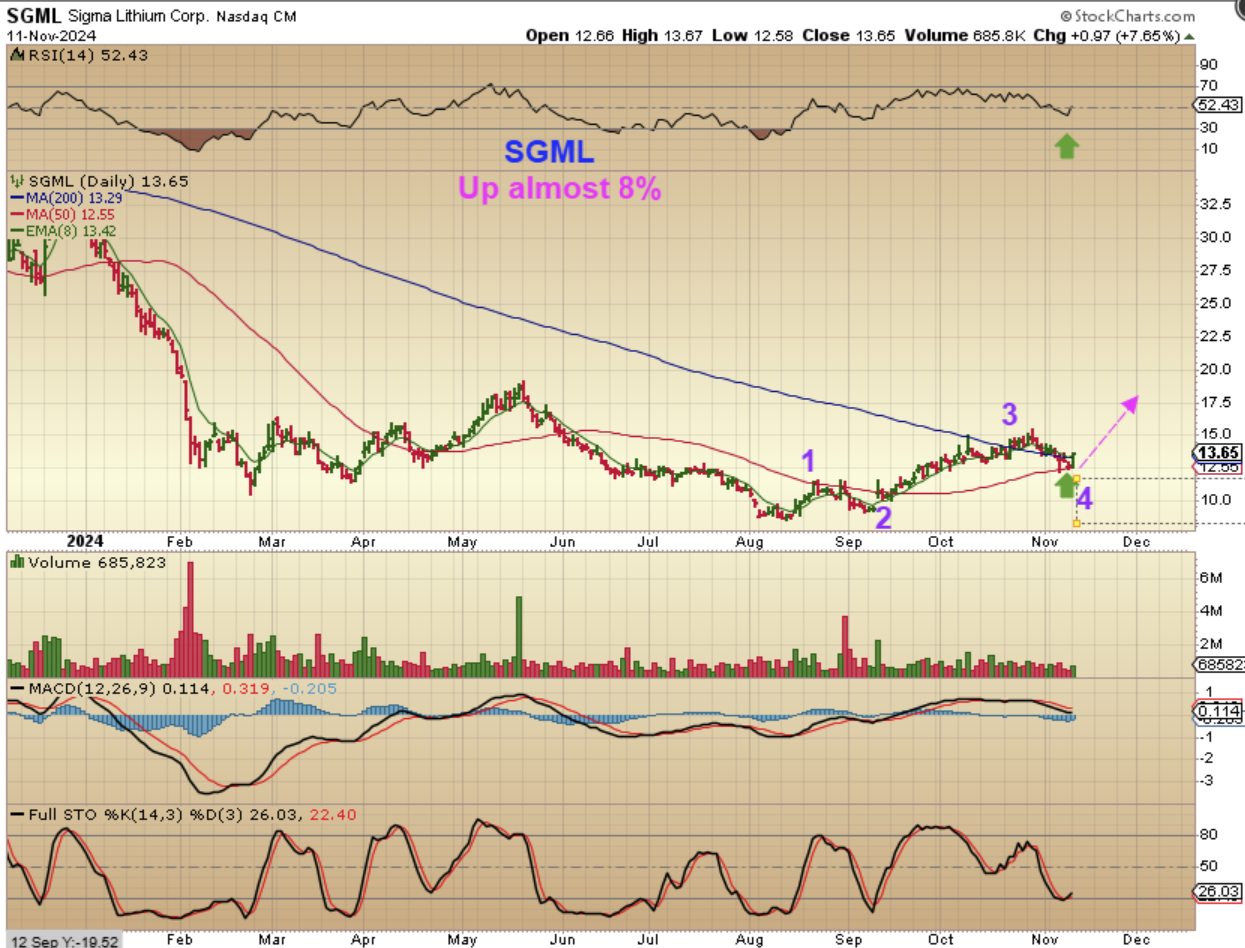 I pointed out this set up was with LAC reversing at support. Note: LAC, PLL, and SGML (lithium stocks? look pretty good. I saw this set up and mentioned it as a buy and took that buy because these often put in 7-10% days.