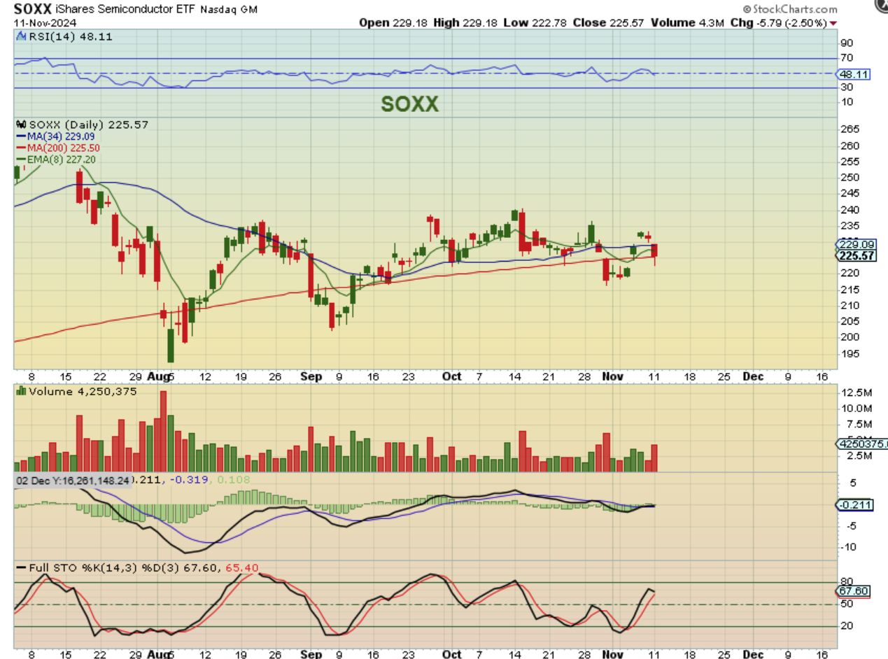 THE SOXX is still struggling though, and this may be concerning, because Semiconductors often reveal the health of the tech markets.
