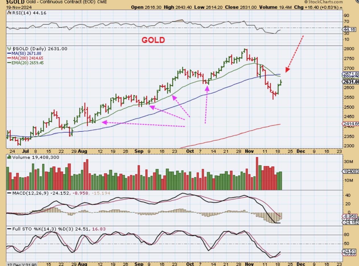 Keep in mind that during a sell off like we have seen in the Precious metals, it gets boring, but this is always a good time to watch your favorite miners with expectations as to where they may land. We could see a bounce now, but stocks like IAG, KGC, HMY, AU, AEM, etc have made very good gains. A dip may offer a nice entry in December, so we’ll discuss that over time too. For example: