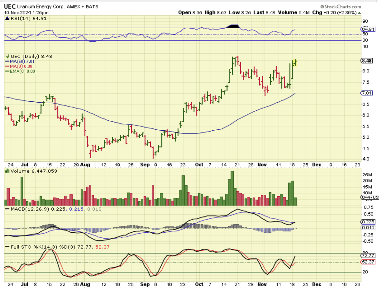 UEC I just wanted to point out the bullish set up on Uranium Stocks. Many have a similar pattern to UEC (DNN, UUUU, CCJ, NXE, etc). After a strong run up out of the September lows, they consolidated and UEC formed a cup-like pattern. THEY ALL LOOK LIKE THIS AND THEY MAY BREAK OUT AND RUN AGAIN.